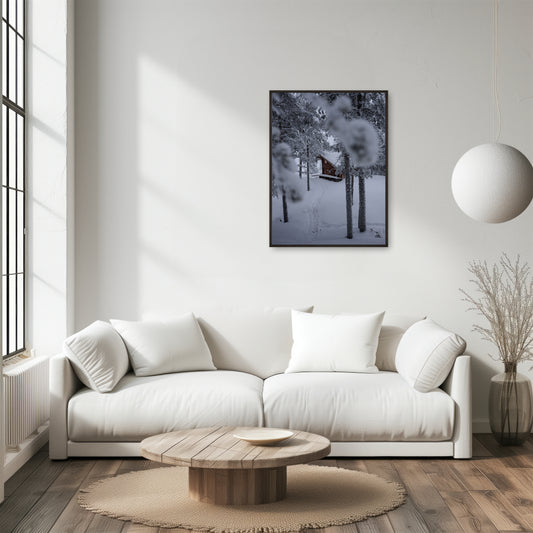 Swedish Cabin Under Snow